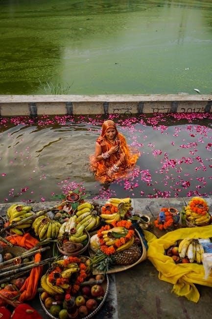 The preparation itself is considered an act of devotion, performed with purity and focus. These PDF guides emphasize offering fresh, vegetarian food, symbolizing gratitude and surrender to Lord Satyanarayana. The food is arranged on a thali (plate) and offered with specific mantras, invoking blessings and acceptance.